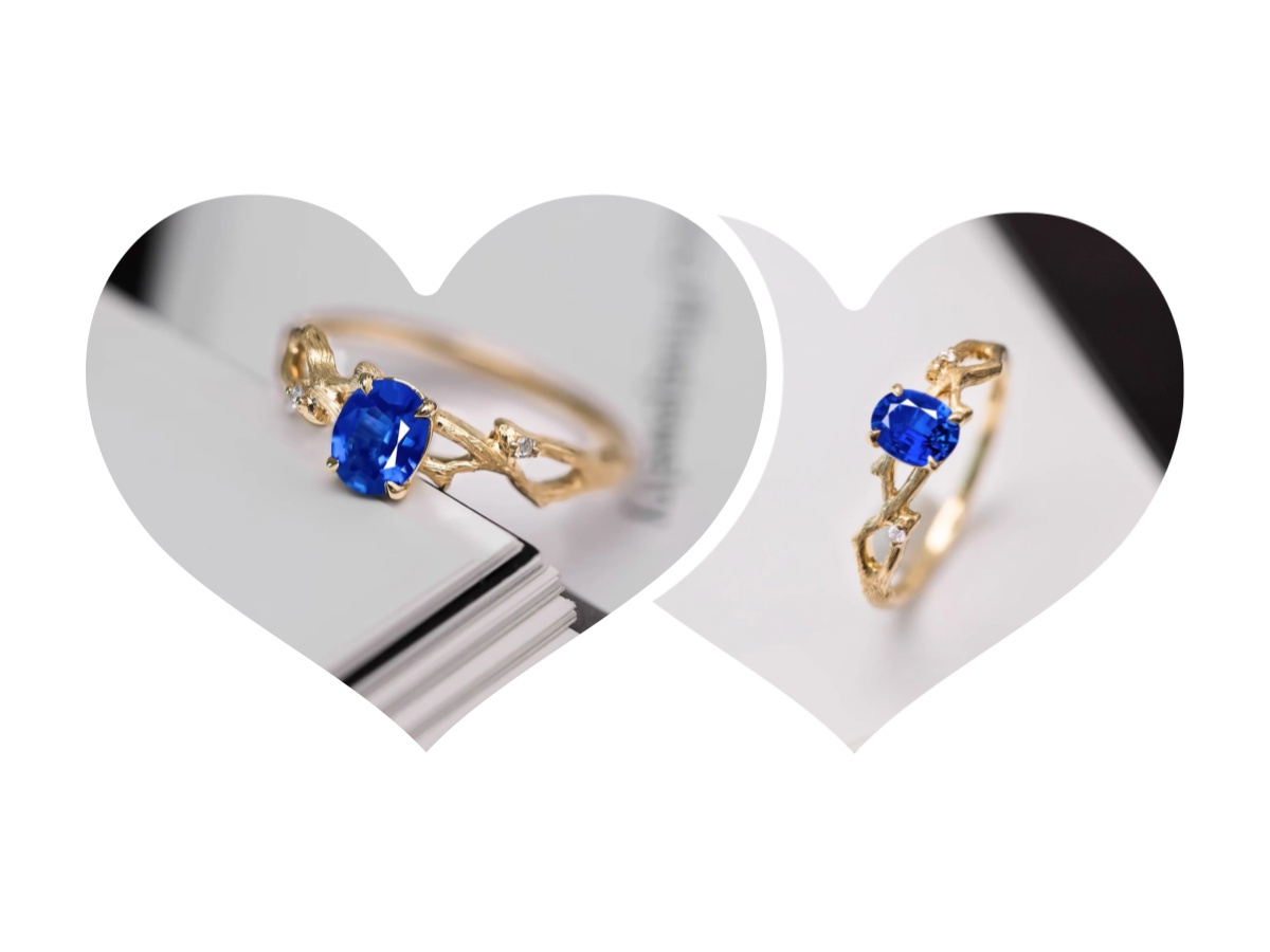 Anello naturale con 14 zaffiri